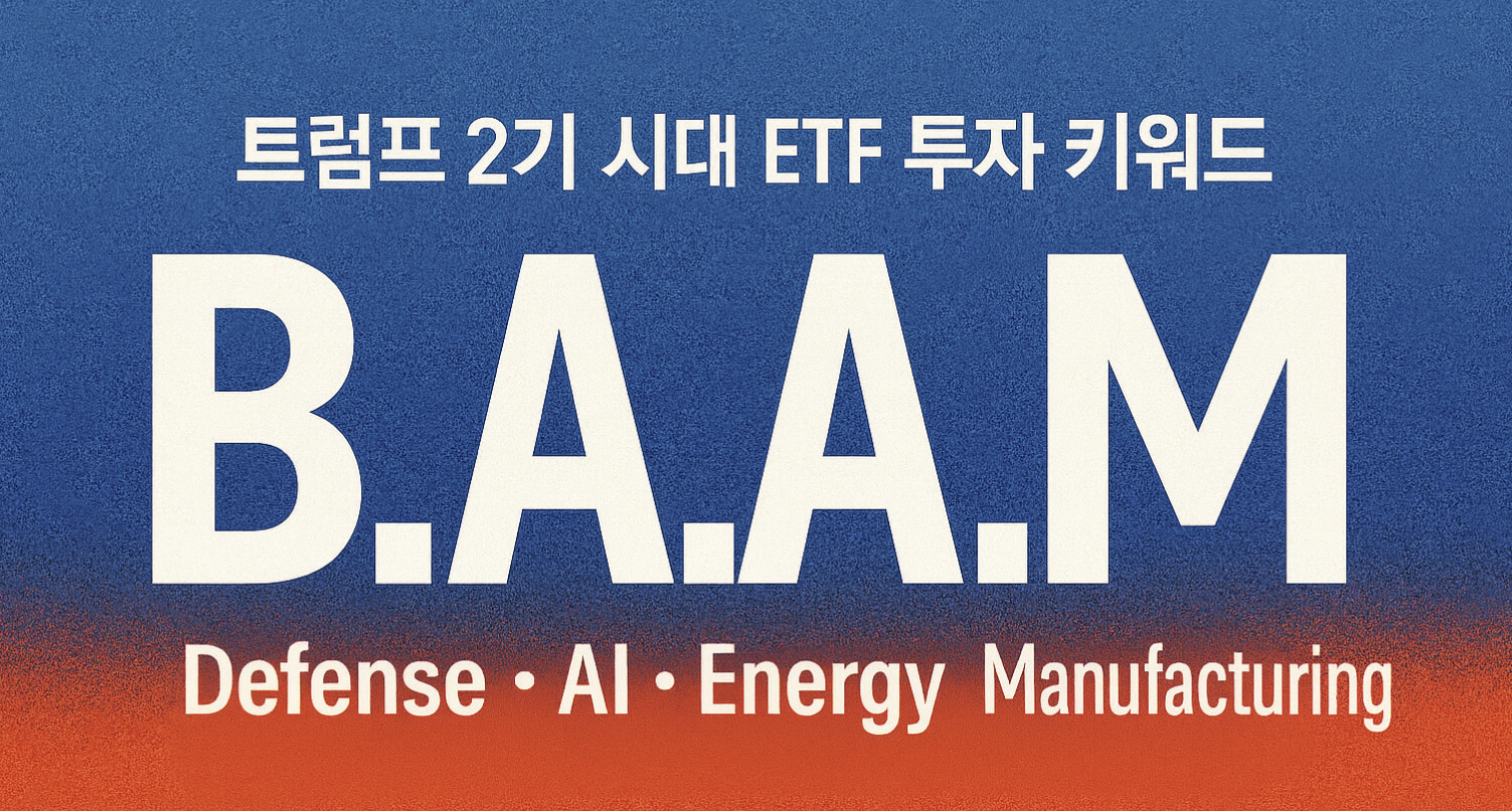 트럼프 2기 시대의 ETF 투자 키워드 B.A.A.M 해석 트럼프 전 대통령이 2기 집권에 성공하면서 글로벌 금융시장은 새로운 국면을 맞이했습니다. 특히 ETF 투자자라면 주목해야 할 핵심 키워드가 있습니다. 바로 B.A.A.M입니다. 이번 글에서는 이 네 가지 키워드를 하나씩 풀어보고, 어떤 ETF 전략을 취할 수 있을지 정리해 드립니다. ※ 본 글은 특정 상품 추천이 아닌 교육용 투자 정보입니다. 1. B.A.A.M이란? B.A.A.M은 트럼프 2기 시대에 주목해야 할 ETF 투자 테마를 요약한 키워드입니다. 영문 약자 뜻 주요 ETF 테마..